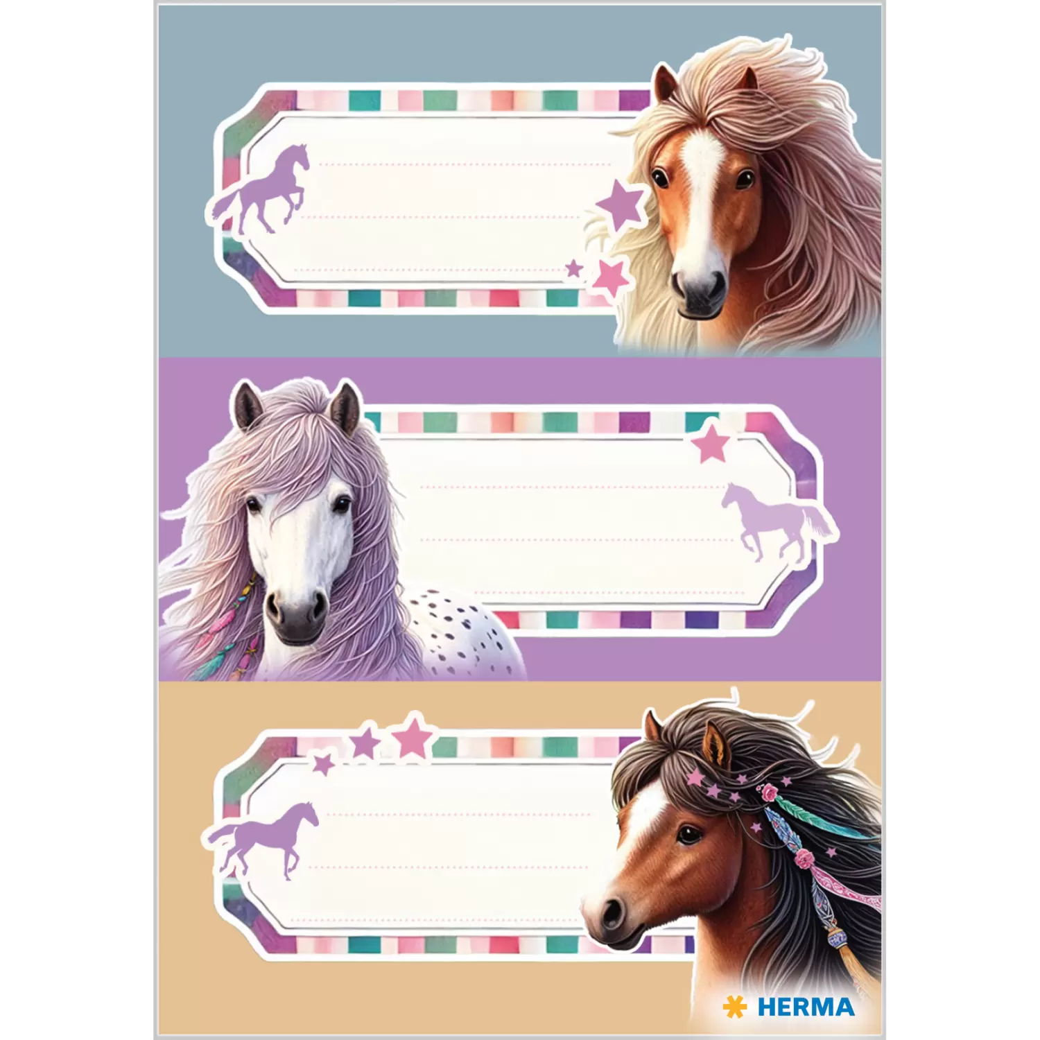 Die Schuletiketten "Pferdewelt" entführen kleine und große Pferdefans auf eine zauberhafte Reise! Die wunderschön gezeichneten Etiketten zeigen Porträts von verspielten Pferden mit wallenden Mähnen, die zu Zöpfen geflochten und mit Perlen sowie bunten Bändern verziert sind. Die sanften, zartlilanen Farbtöne verleihen den Motiven eine harmonische Atmosphäre und laden zum Träumen ein. Diese Etiketten sind perfekt zum Beschriften von Heften, Büchern oder Mappen und bringen Freude und Spaß in den Schulalltag! Sie sind ideal für alle, die die ländliche Idylle und die Liebe zu Pferden im Herzen tragen. Ein tolles Highlight zum Beschriften und Verschönern der Schulsachen!