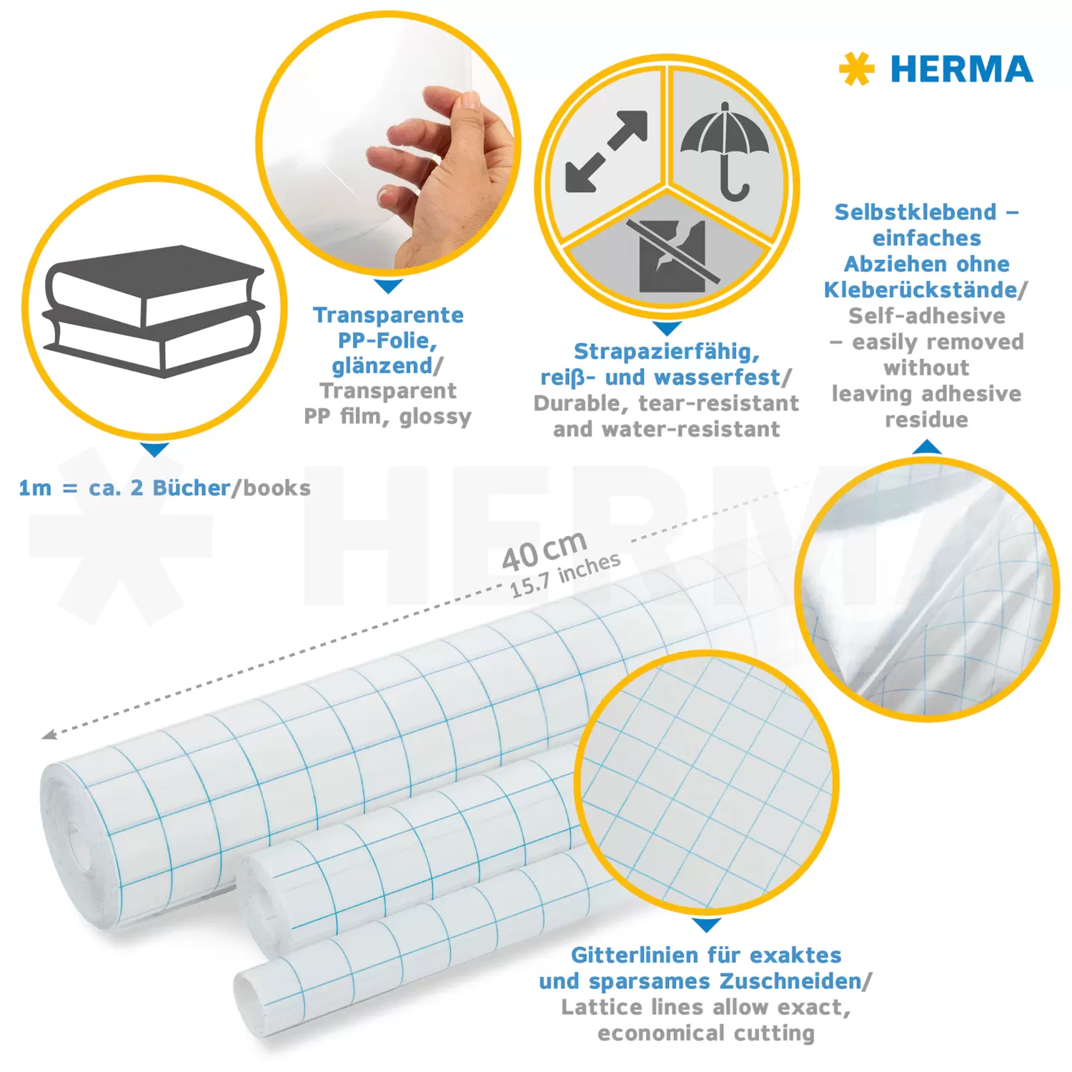 - Gitterlinien auf dem Trägerpapier für exaktes und sparsames Zuschneiden