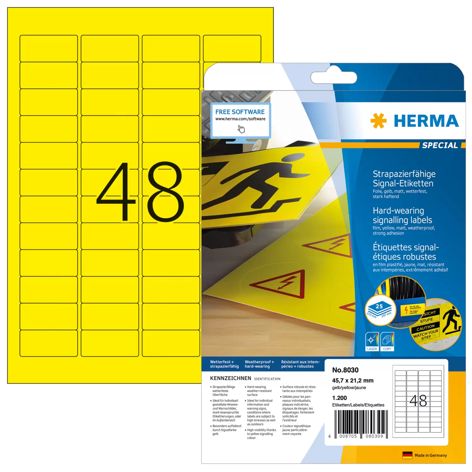 - Ideal für individuell gestaltete Hinweis- und Warnschilder, besonders auffällig in Signalfarbe gelb