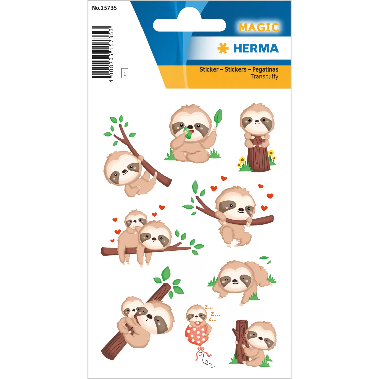 Im Dschungel, da tummeln sich so einige Gesellen – und die langsamsten sind die niedlichen Faultiere. Diese wunderschön gestalteten Sticker aus robuster Transpuffy-Folie mit der liebenswerten Faultier-Familie eignen sich perfekt zum Verschönern und Dekorieren. Die Sticker sind permanent haftend und selbstklebend auf fast allen Oberflächen. Sie lassen sich ganz einfach abziehen und beliebig aufkleben. Ideal als Verzierung für Hefte, Ordner und Mappen, zum Basteln oder zum Sammeln und Tauschen.