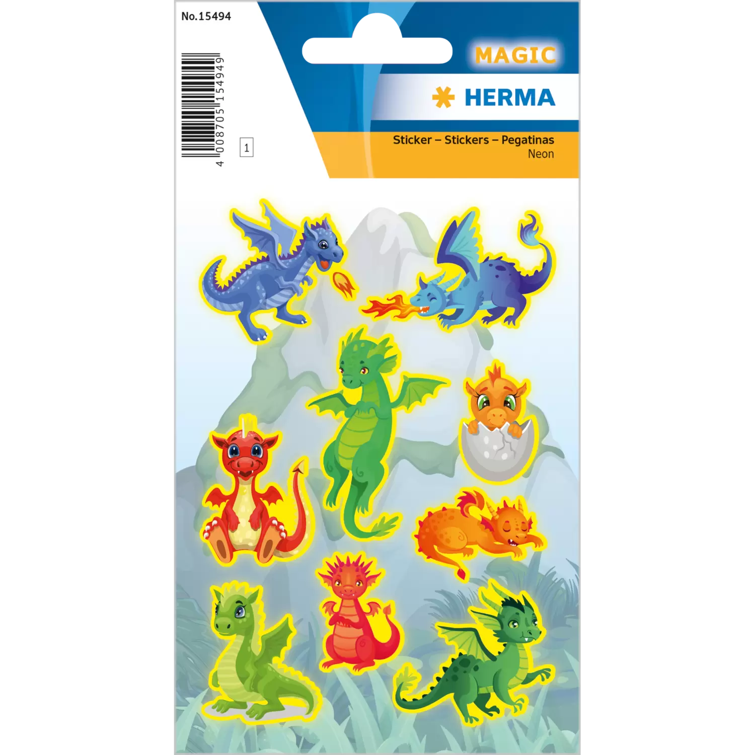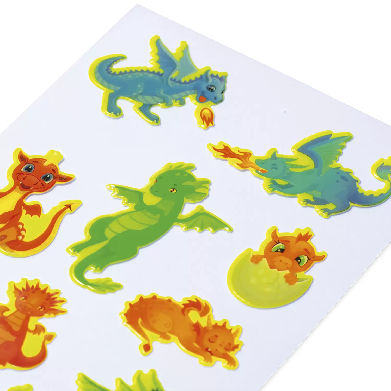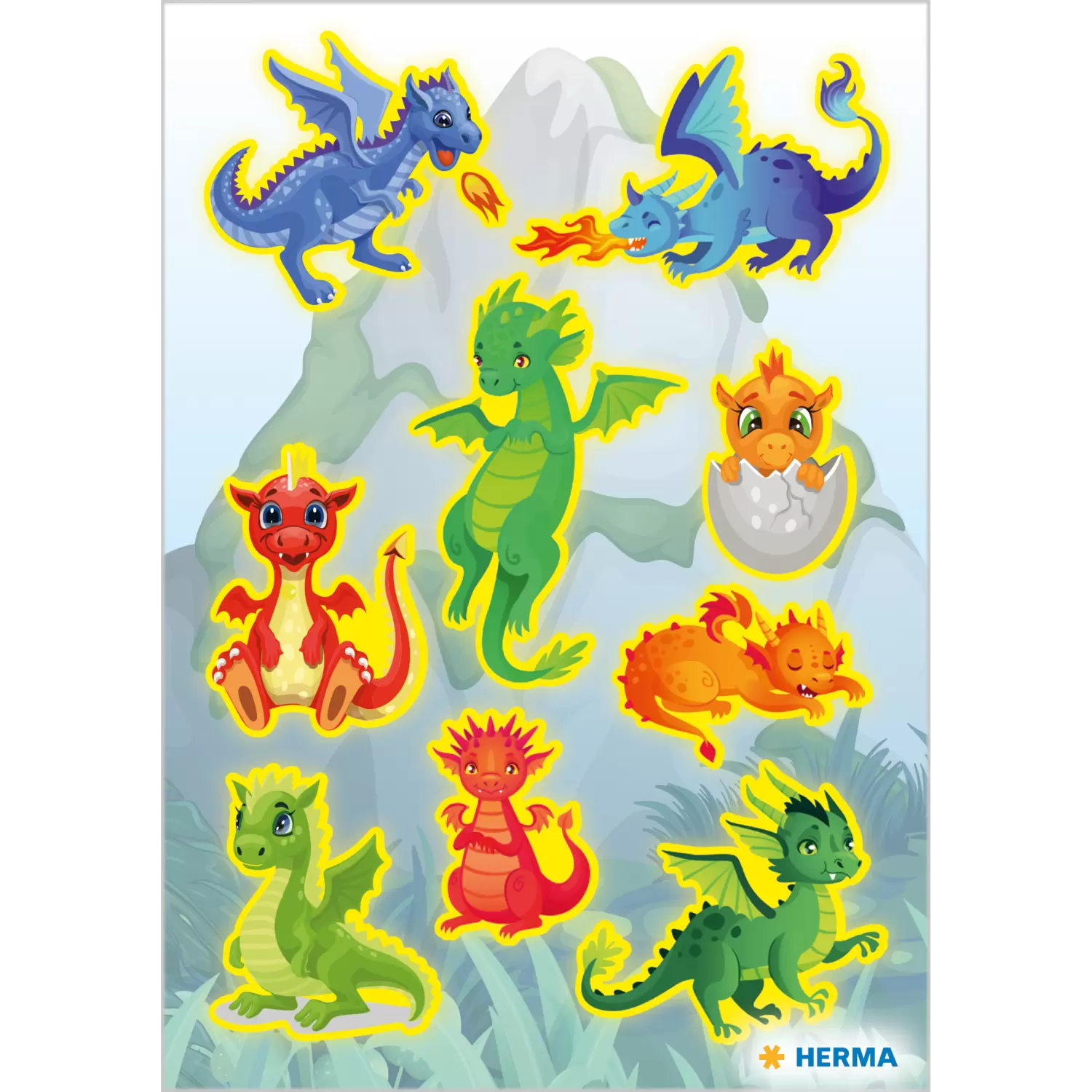 Coole Drachensticker mit tollem Neon-Effekt. Die Sticker sind aus Folie gefertigt, daher langlebig und robust und können viele Male abgezogen und neu aufgeklebt werden. Sie sind ideal als Verzierung für Hefte, Ordner und Mappen und natürlich zum Tauschen und Sammeln im Stickeralbum.