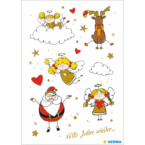 Niedliche Engel, ein süßes Rentier und ein fröhlicher Nikolaus – mit ihrem kindlichen Charme bezaubern diese Sticker Groß und Klein. Dazu kommt die Veredelung durch den Glimmer-Effekt, da glitzert und funkelt es wunderbar weihnachtlich.
