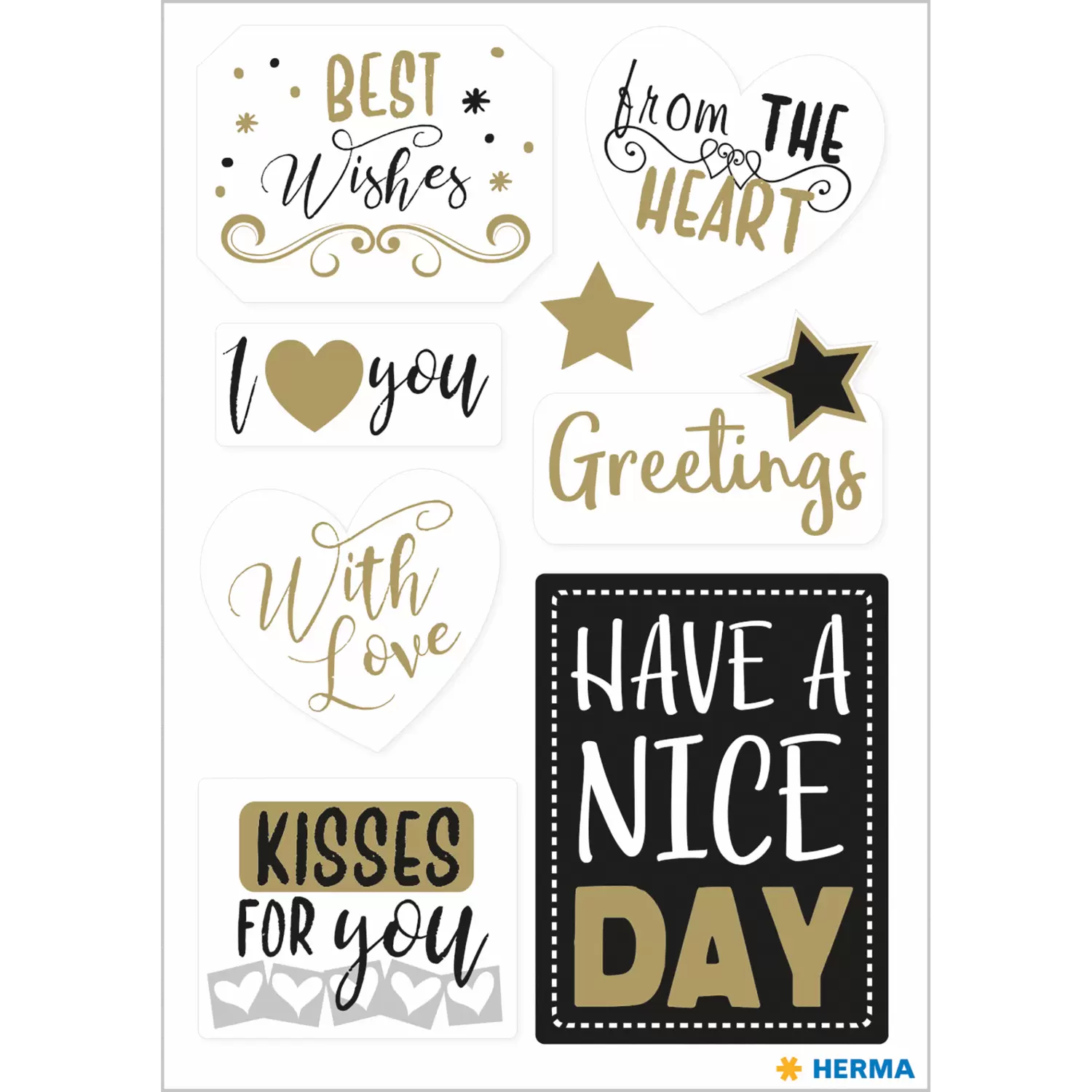 Die Sticker "Best Wishes" sind in sieben verschiedenen Formen und Designs gestaltet und überbringen einen lieben Gruß an den Beschenkten. Dazu sind sie mit Goldfolie verziert, die Königin unter den Veredel ungen! Hochwertig, modern und mit persönlicher Botschaft – ideal für Geschenke, die von Herzen kommen.
