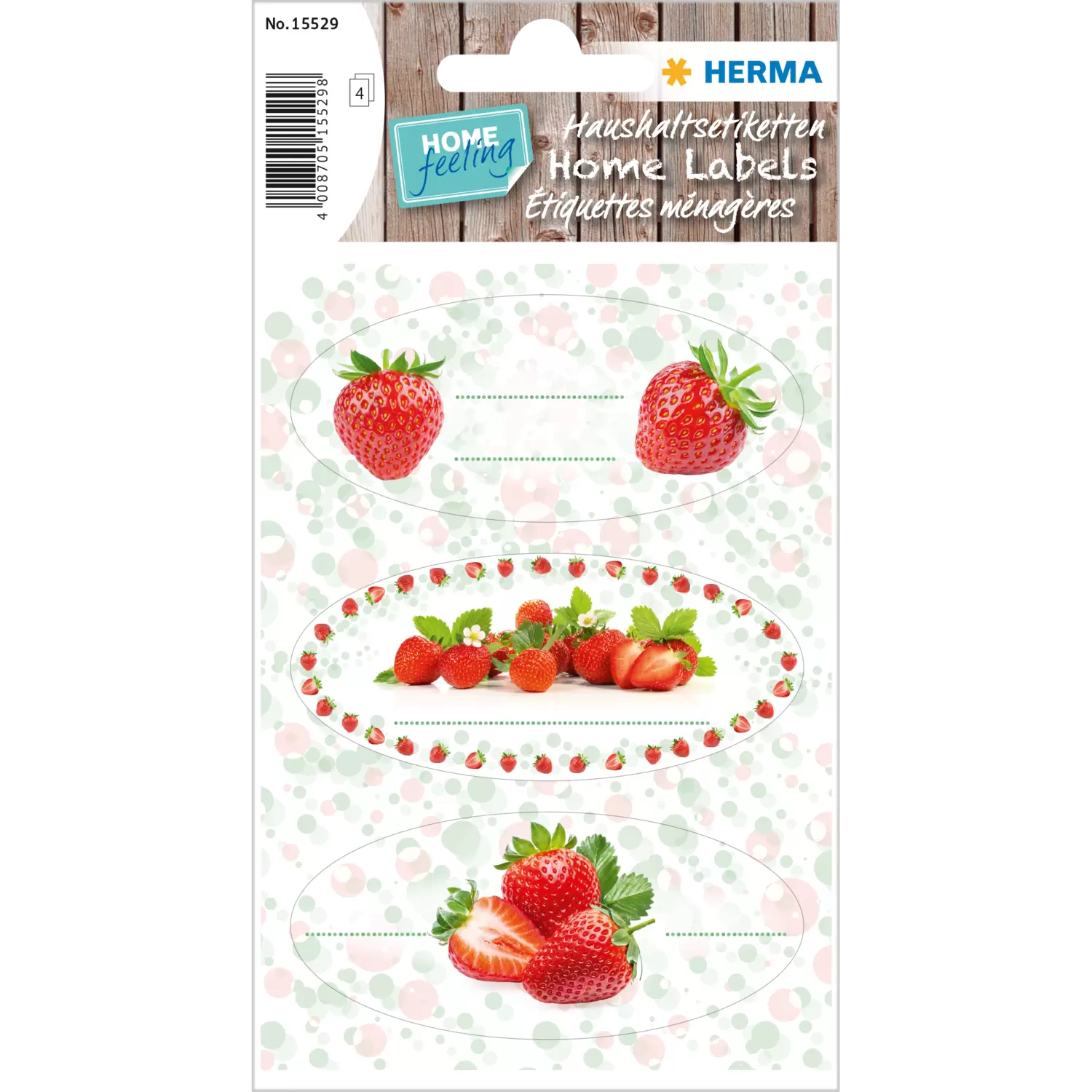 Sommerzeit ist Erdbeerzeit! Mit den köstlichen kleinen Früchten kann man leckere Kuchen, Torten und Nachtische zaubern, sie direkt frisch vom Feld naschen und sie lassen sich wunderbar zu Marmelade verarbeiten - der Hit am Frühstückstisch. Mit den HERMA Küchenetiketten im wunderschön gestalteten Erdbeer-Design lassen sich selbstgemachte Fruchtaufstriche, Gelees, Marmeladen und Konfituren ganz einfach und schön beschriften. Die hochwertigen Etiketten sind oval, 76 x 35 mm groß und permanent haftend. Sie sind aus chlorfrei gebleichtem Papier gefertigt und mit lösemittelfreiem Haftkleber hergestellt, ideal für die Beschriftung von Lebensmitteln. In einer Packung sind 12 Etiketten in drei verschiedenen erdbeerig-schönen Designs enthalten.