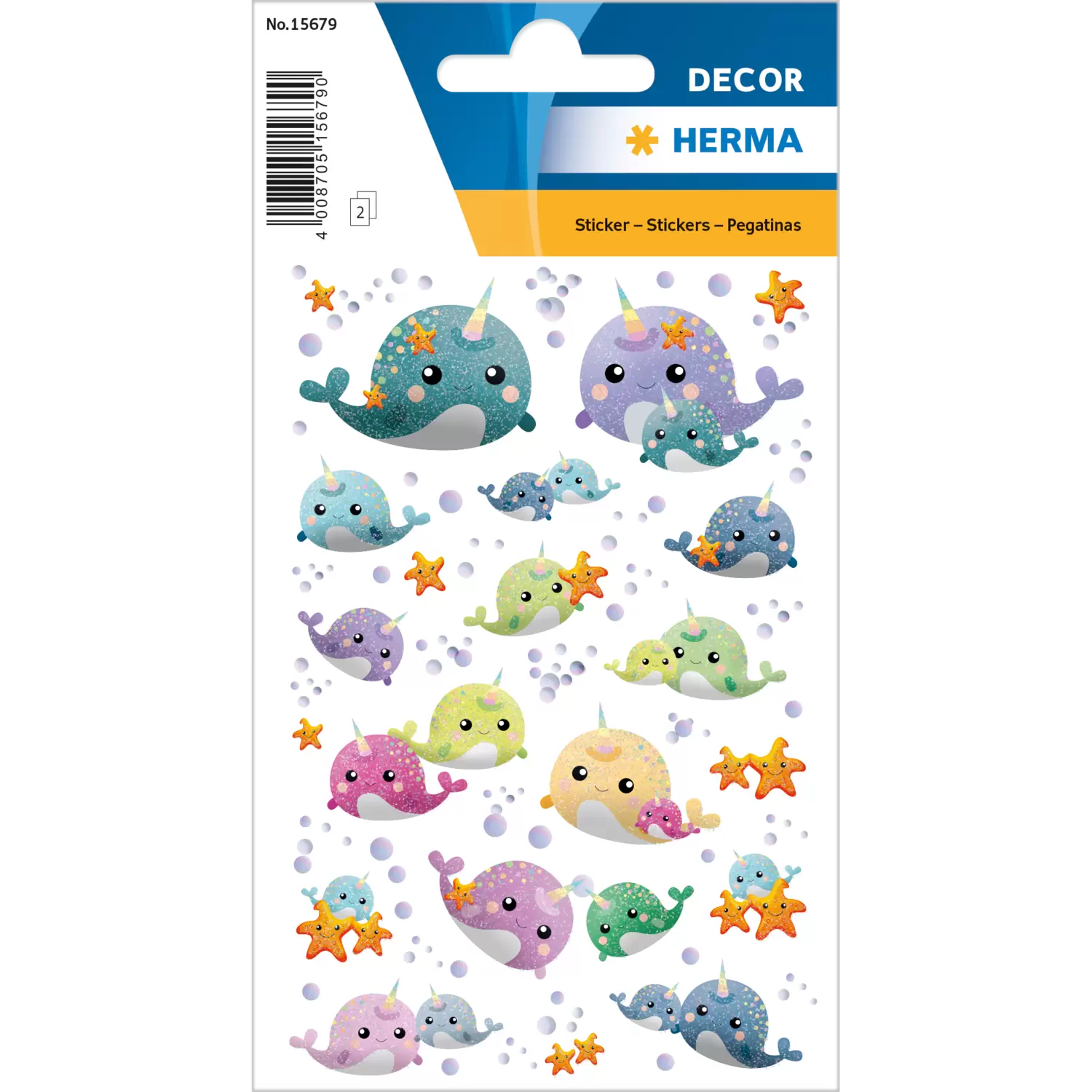 Für wahre Wal-Fans hat HERMA nun ganz besondere Aufkleber im Angebot. Diese niedlichen Sticker von HERMA sind definitiv ein passendes Bastel-Geschenk für Ihre Kinder. Sie können hervorragend für die Bastelstunde im Kindergarten, aber auch für zu Hause verwendet werden, um vielerlei Gegenstände und Oberflächen zu verschönern. Bei so manchen Flächen ist es jedoch notwendig, dass sie glatt und trocken sind, damit die gut haftenden Aufkleber langanhaltend für einen Hingucker sorgen können. Sie machen sich besonders auf Einladungen, Gruß- und Geburtstagskarten, Briefen, Fotoalben und Mappen oder auf Freundschaftsbüchern besonders gut. Damit die Sticker nicht verloren gehen, bietet HERMA Stickerhefte an, in denen die Aufkleber einsortiert werden können und jederzeit leicht auffindbar sind. Aufgrund des besonderen Spezialpapiers, aus welchem die bunten und witzigen Aufkleber bestehen, ist es ein Leichtes für Ihr Kind, die Sticker vom Papier zu lösen. Sie können sie individuell nach Ihren Wünschen und Ideen aufkleben. Sie regen aber auch zum Sammeln, Spielen und Tauschen an und stellen ein herrliches Hobby für Jung und Alt dar. Insgesamt sind auf den zwei Blättern 28 Sticker enthalten. Mit den DECOR Stickern lernt Ihr Kind früh, kreativ zu sein und bekommt ein Auge für vielerlei Gestaltungsmöglichkeiten. Mit der HERMA Sticker-Welt findet man für jeden Geschmack und Anlass das richtige Motiv.
