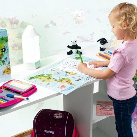 - Praktisches A5 Format für kleine Hände – passt in jede Tasche und jeden Rucksack.