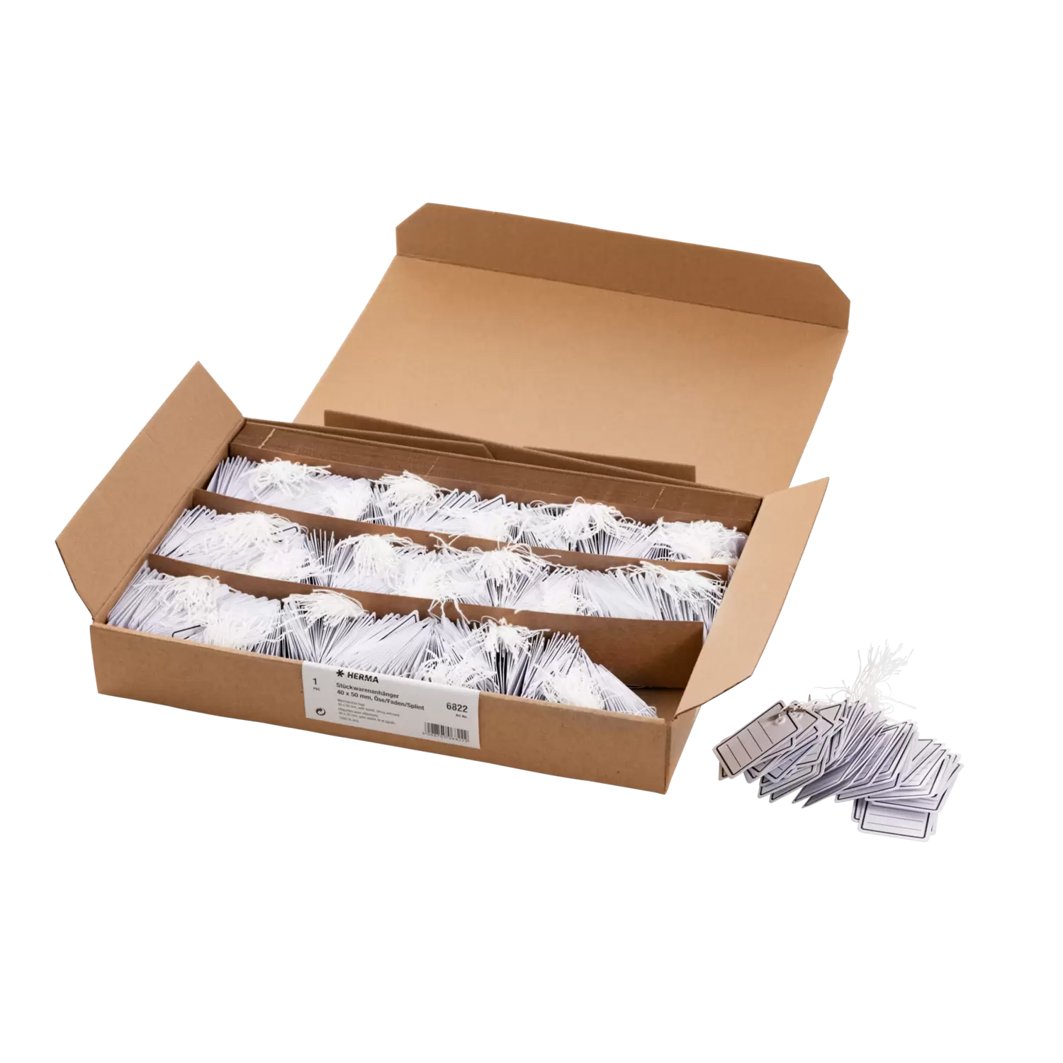 Stückwarenanhänger 40 x 50 mm, mit Öse/Faden/Splint, 1000 St.