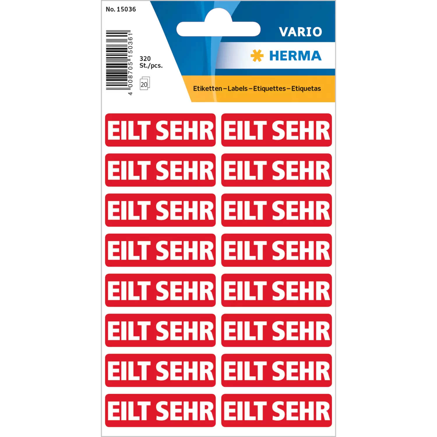 Textetiketten "Eilt sehr" 12 x 40 mm, selbstklebend, 320 Stück