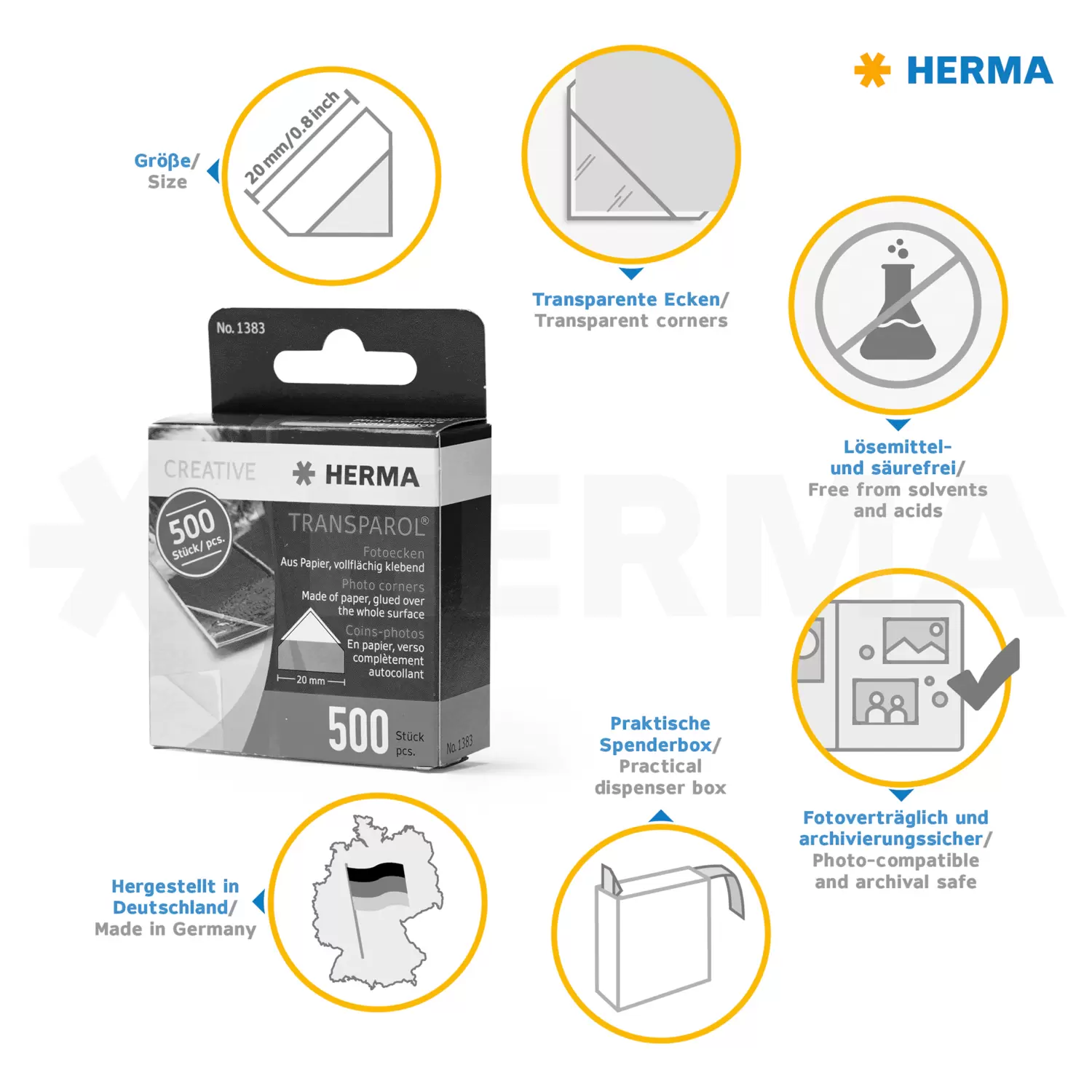 - HERMA Fotoecken Transparol selbstklebend, mit Klarsichtfolienecke zum Einstecken von Fotos und Postkarten