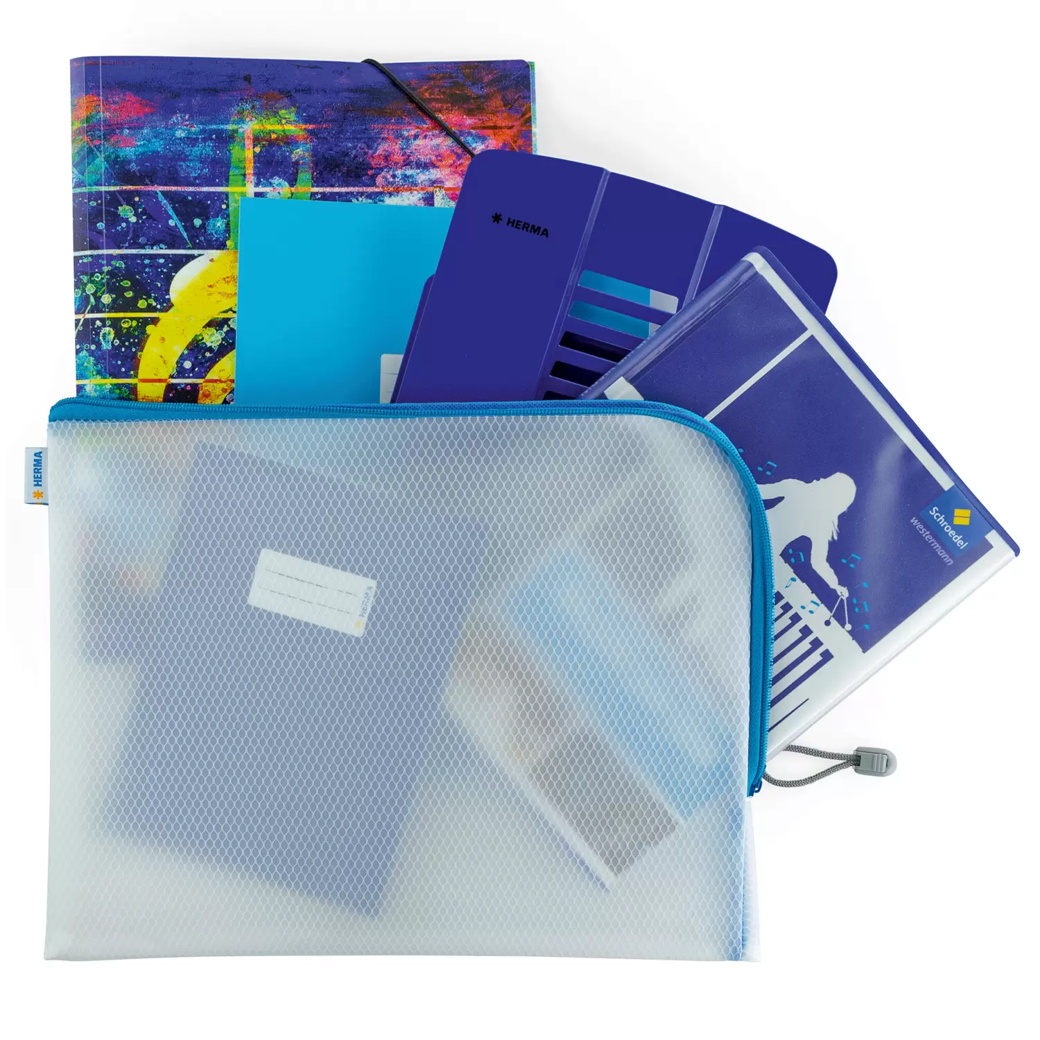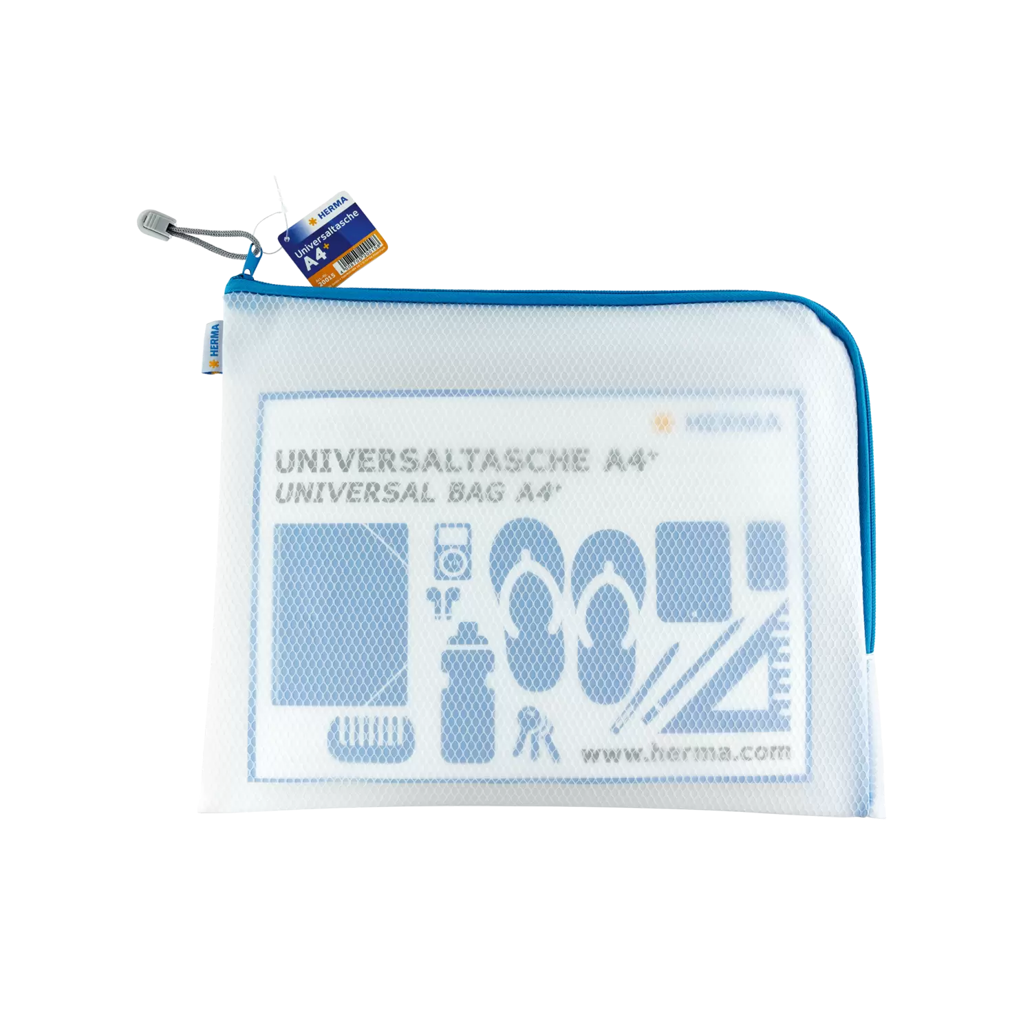 - HERMA Universaltasche A4+, mit praktischem Reißverschluss, blau eingefassten Nähten, 36 x 28 cm, langlebiges Material