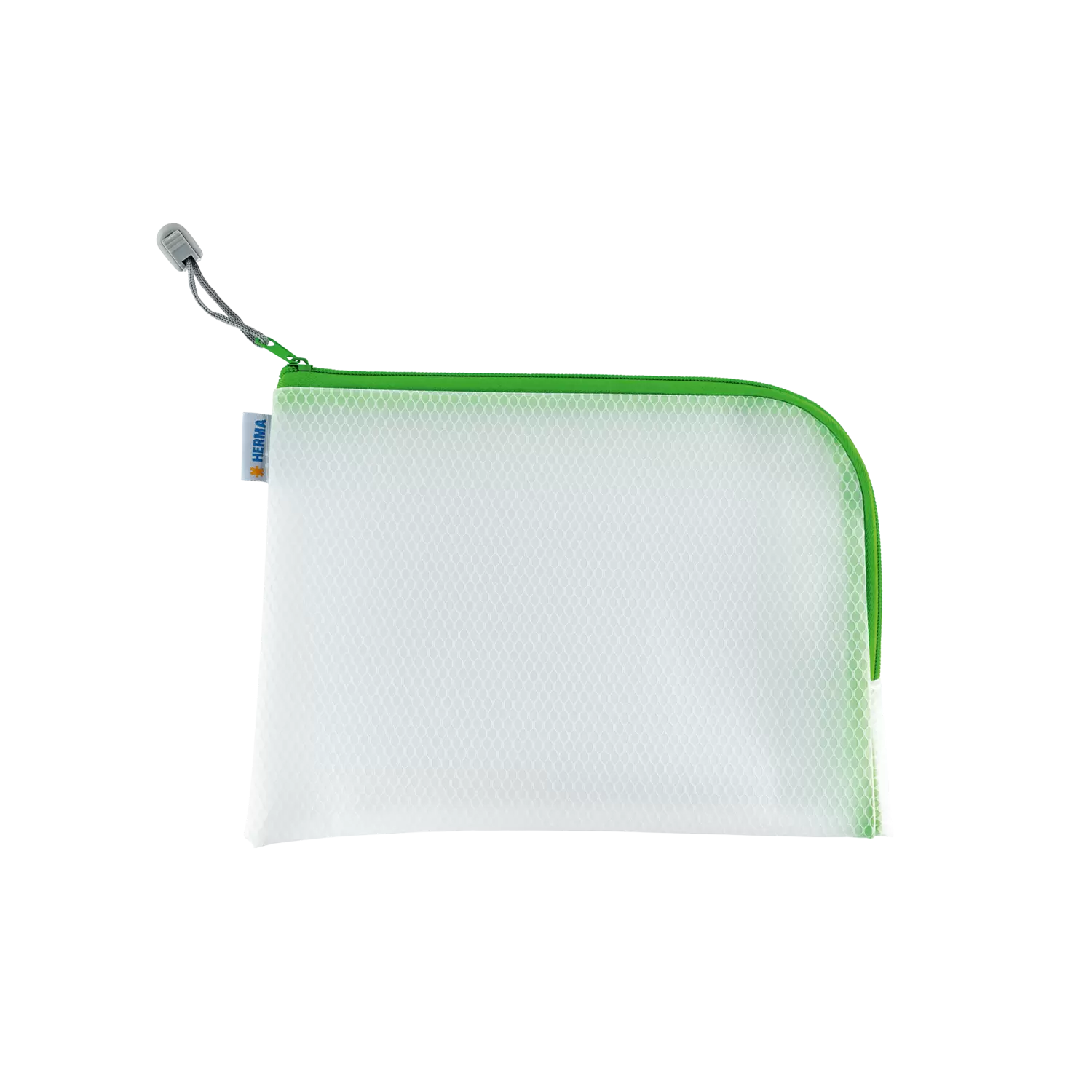 Die HERMA Universaltasche A5, 26 x 20 cm, grün eingefasst, mit praktischem Reißverschluss über Eck gibt es auch in den Farben rot, blau, gelb und orange. Die halbtransparente Tasche ist für viele Zwecke super praktisch: zum Sammeln, Sortieren, Archivieren. Auf Reisen für Dokumente oder als Strandtasche für Badehose, Bikini und Sonnencreme, für A5 Hefte und Notizbücher für die Schule und Universität oder für Handy, Ladekabel und Schlüssel oder für viele Dinge in der Werkstatt – einfach perfekt für jeden Aufbewahrungszweck. Die stabile gitterverstärkte und transparente Folie lässt den Einblick zu und schützt perfekt vor äußeren Einflussfaktoren, wie Verschmutzungen, Dreck und Feuchtigkeit. Das Material zeichnet sich durch seine besondere Widerstandskraft aus und ist abriebfest. Die Aufbewahr- und Sortierwunder sind noch in zwei weiteren Größen erhältlich.