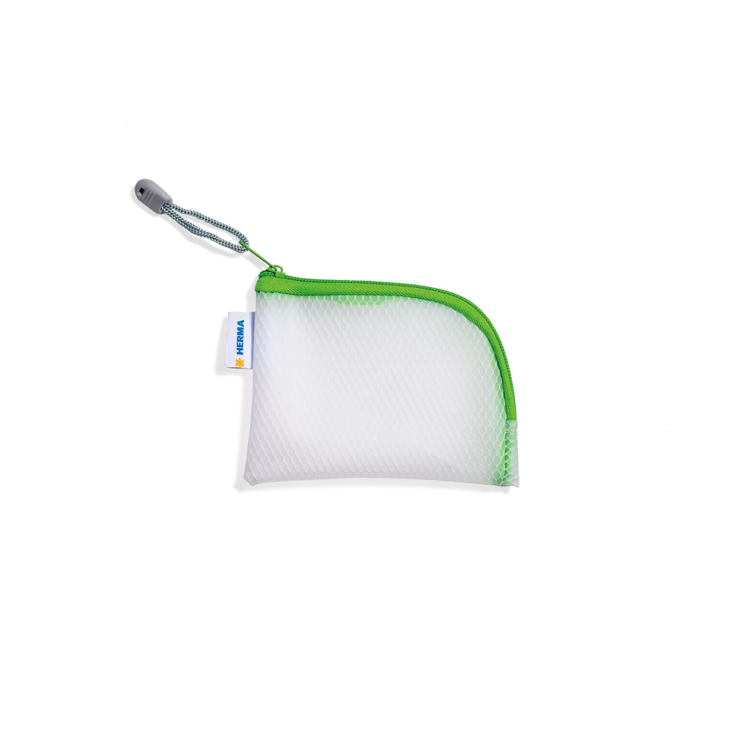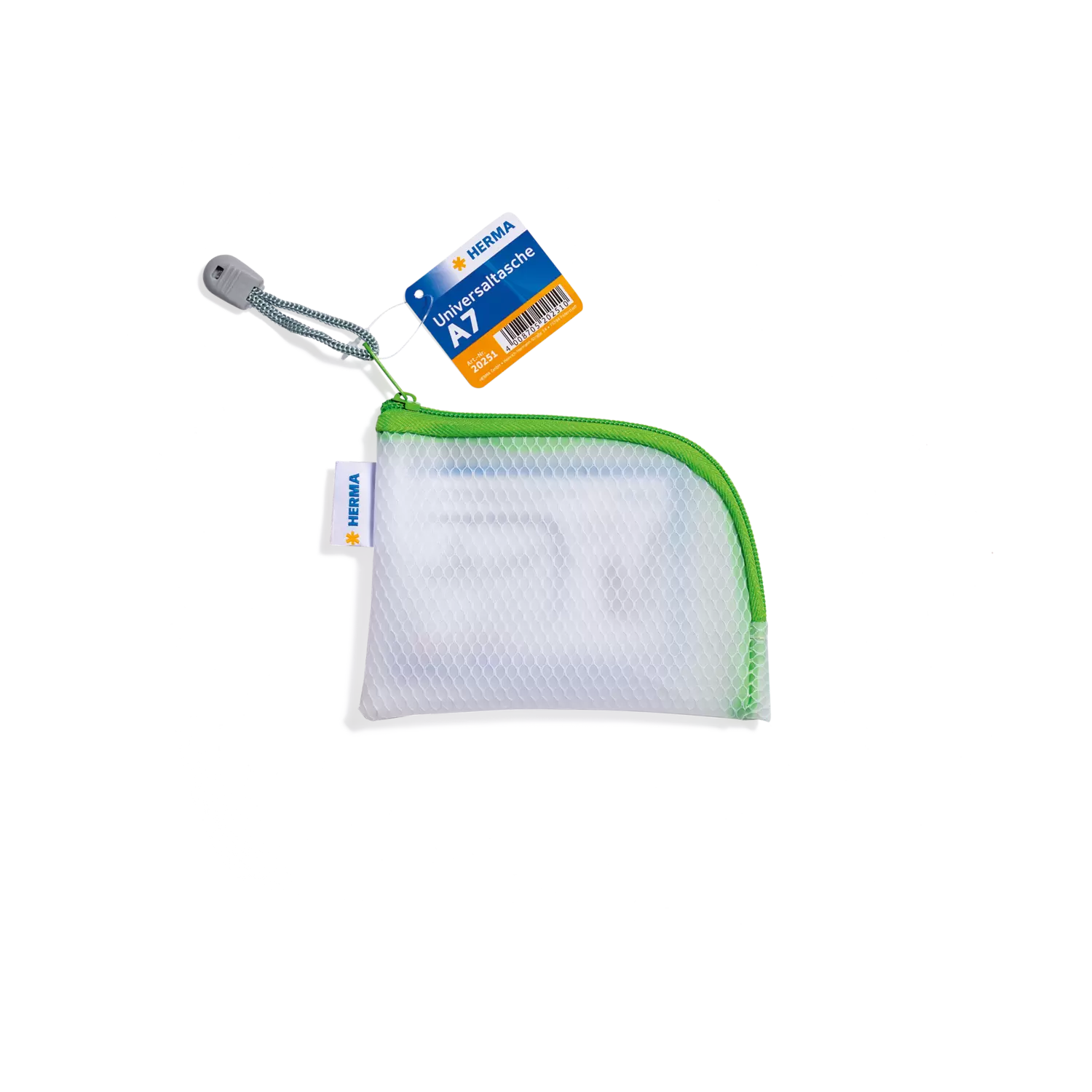 Die HERMA Universaltasche A7, (14 x 10 cm), mit praktischem Reißverschluss über Eck in der Farbe grün. Die halbtransparente Tasche ist für viele Zwecke super praktisch: zum Sammeln, Sortieren, Archivieren. Auf Reisen für Kleinkram und als Necessaire, im Büro, in Bad oder der Werkstatt – einfach für jeden Aufbewahrungszweck. Die stabile gitterverstärkte und transparente Folie lässt den Einblick zu und schützt perfekt vor äußeren Einflussfaktoren, wie Verschmutzungen, Dreck und Feuchtigkeit. Das Material zeichnet sich durch seine besondere Widerstandskraft aus und ist abriebfest. Die Aufbewahr- und Sortierwunder sind noch in vielen weiteren Größen erhältlich.