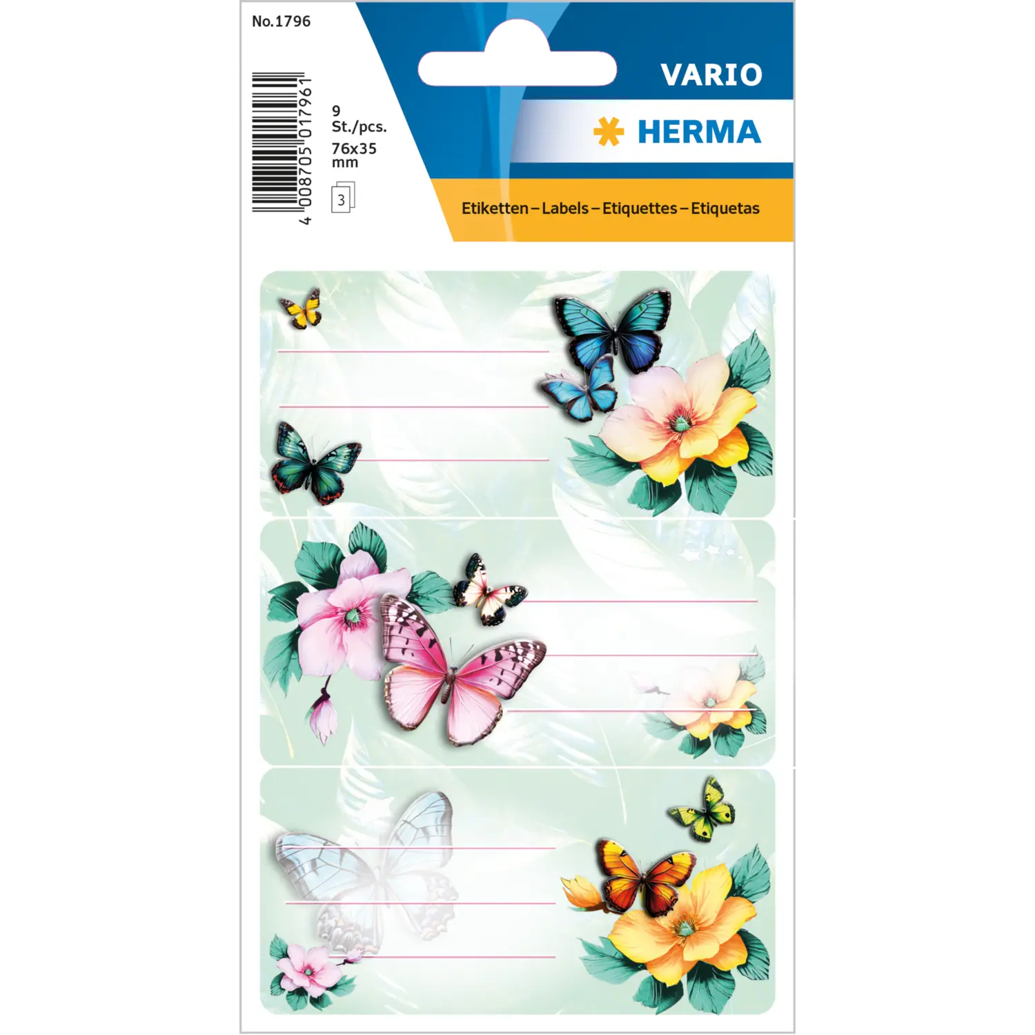 VARIO SCHULETIKETIKETT SCHMETTERLINGE