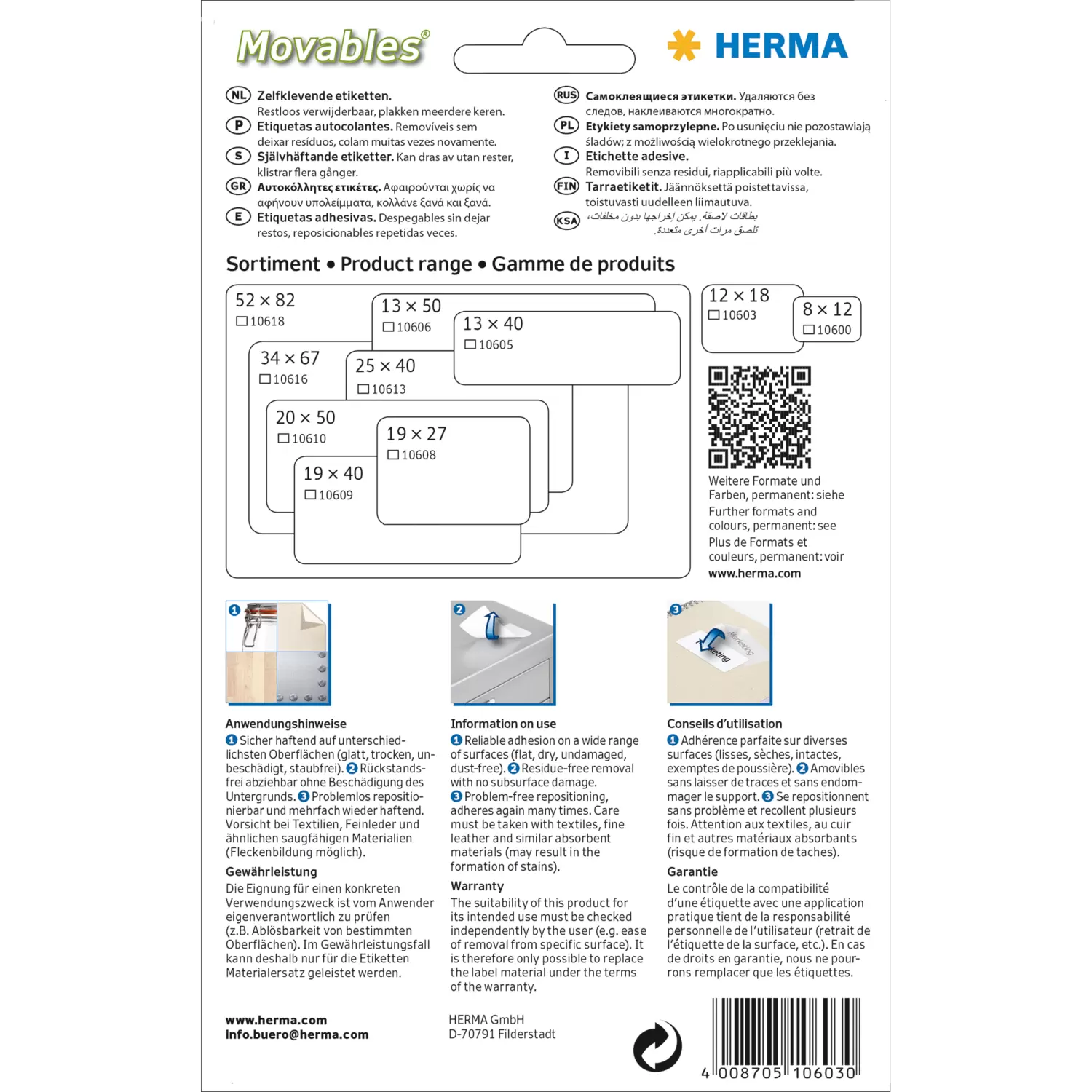 Ablösbare Vielzwecketiketten 12 x 18 mm, weiß, zur Handbeschriftung