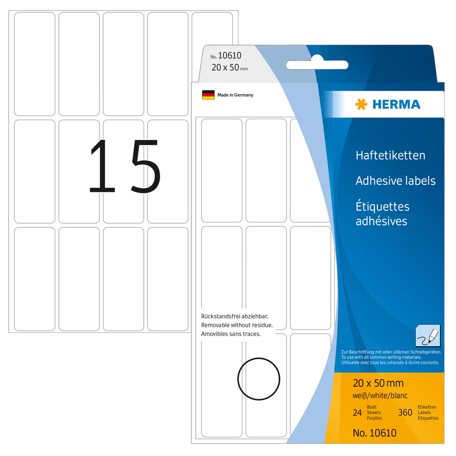 Ablösbare Vielzwecketiketten 20 x 50 mm, weiß, zur Handbeschriftung