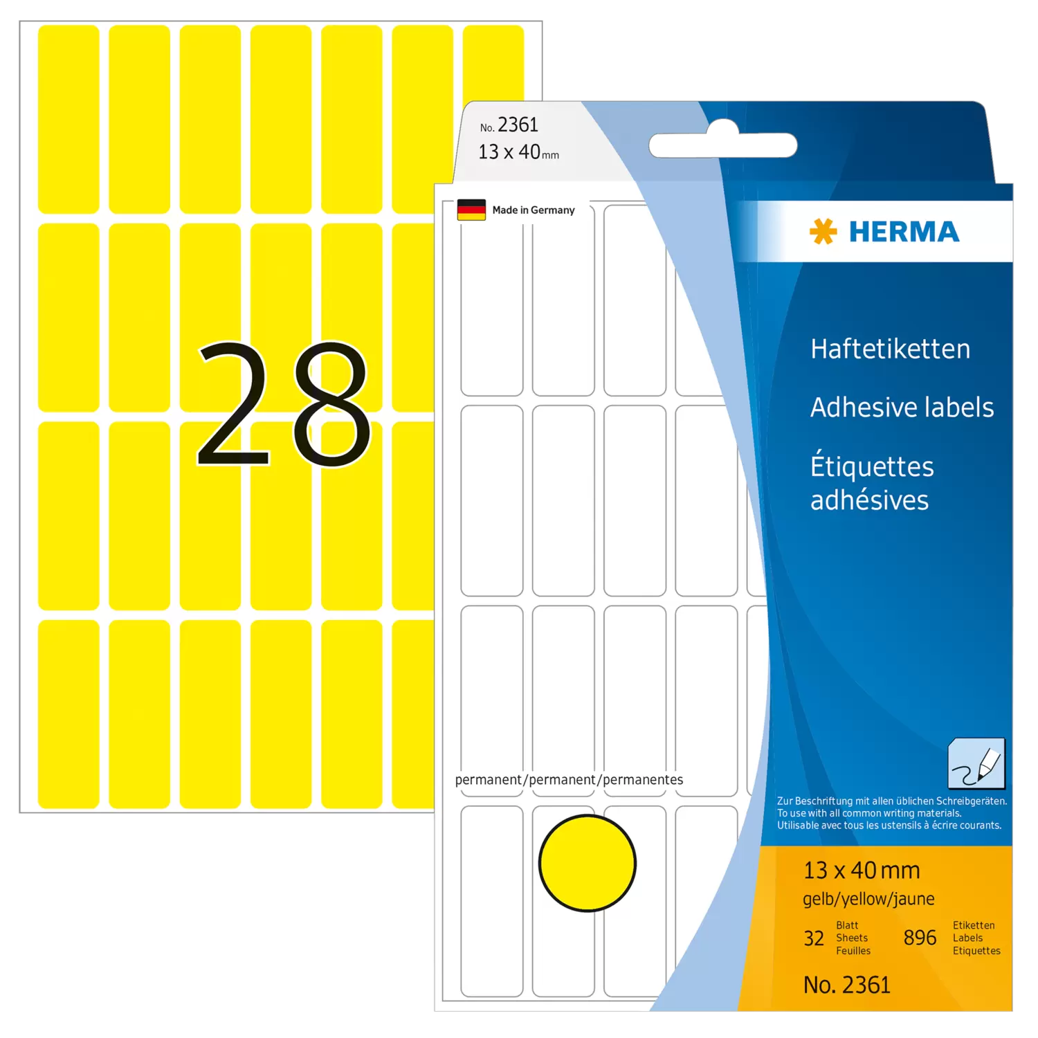 Vielzwecketiketten 13 x 40 mm, gelb, permanent haftend, zur Handbeschriftung