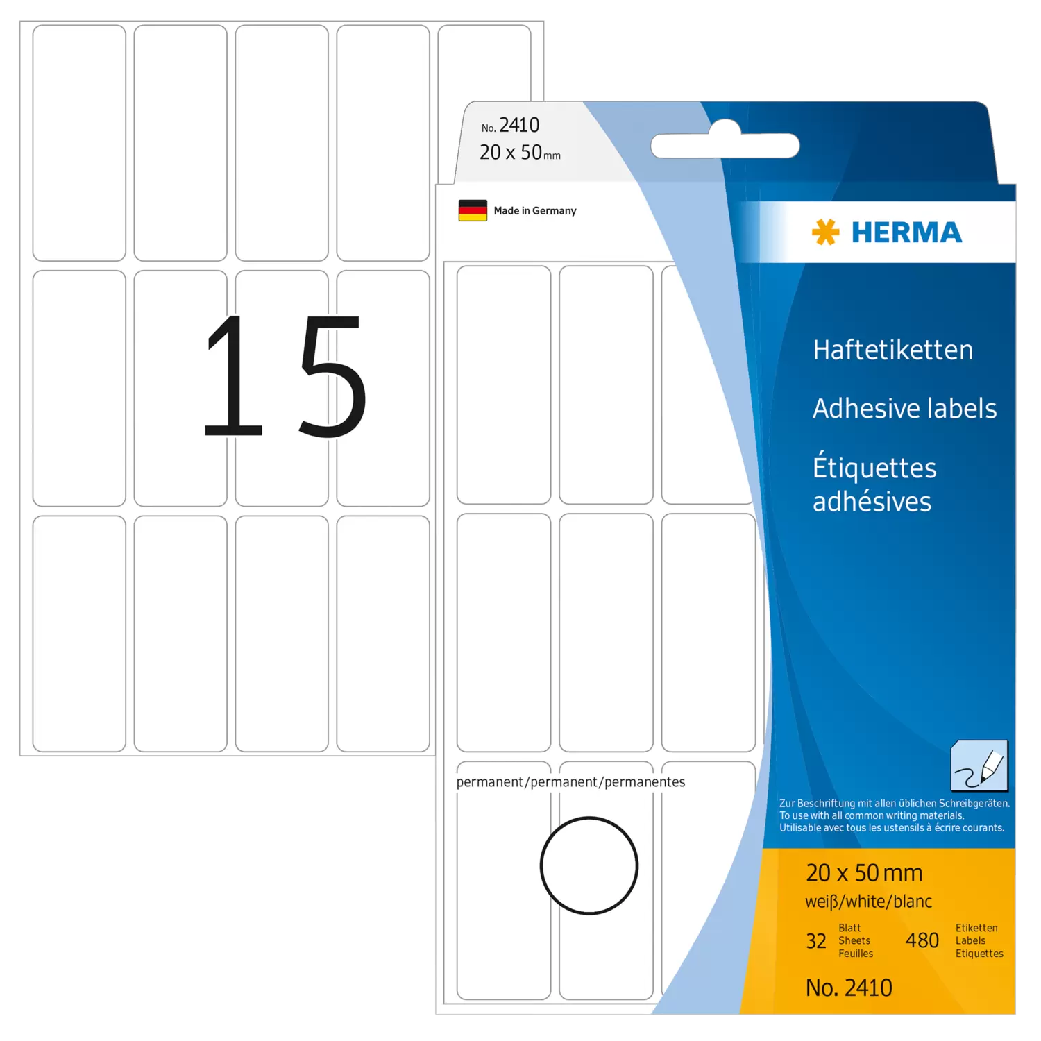 Vielzwecketiketten 20 x 50 mm, weiß, permanent haftend, zur Handbeschriftung