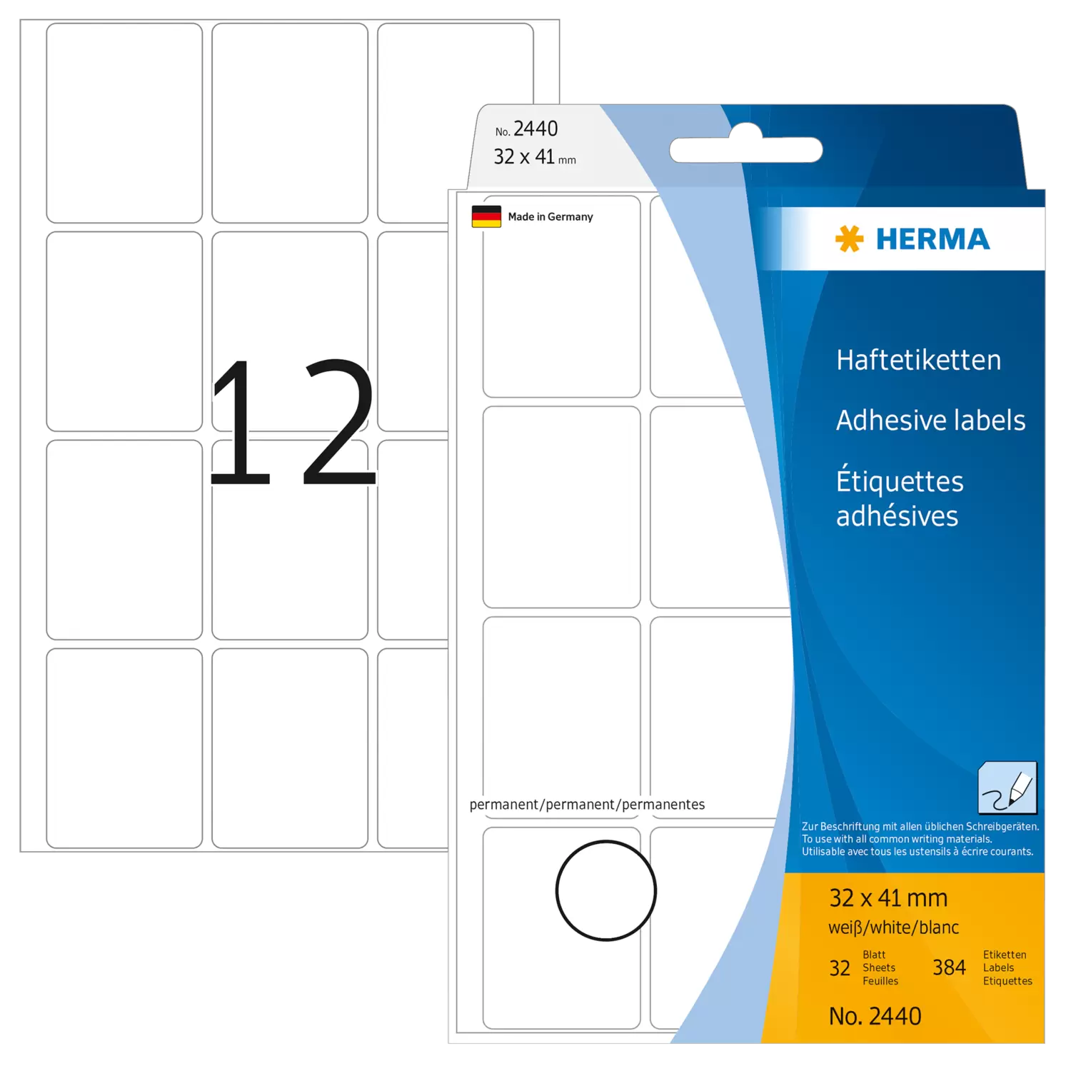 Inhalt 384 Etiketten / 32 Blatt
