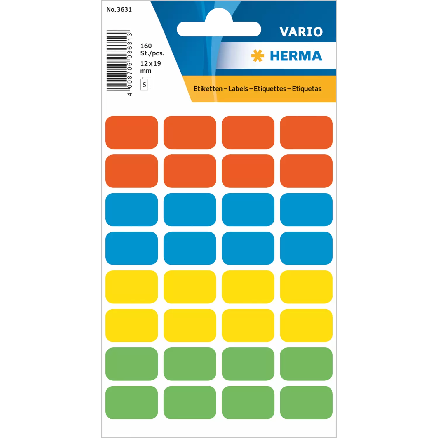 Vielzwecketiketten 12 x 18 mm, farbig sortiert, permanent haftend