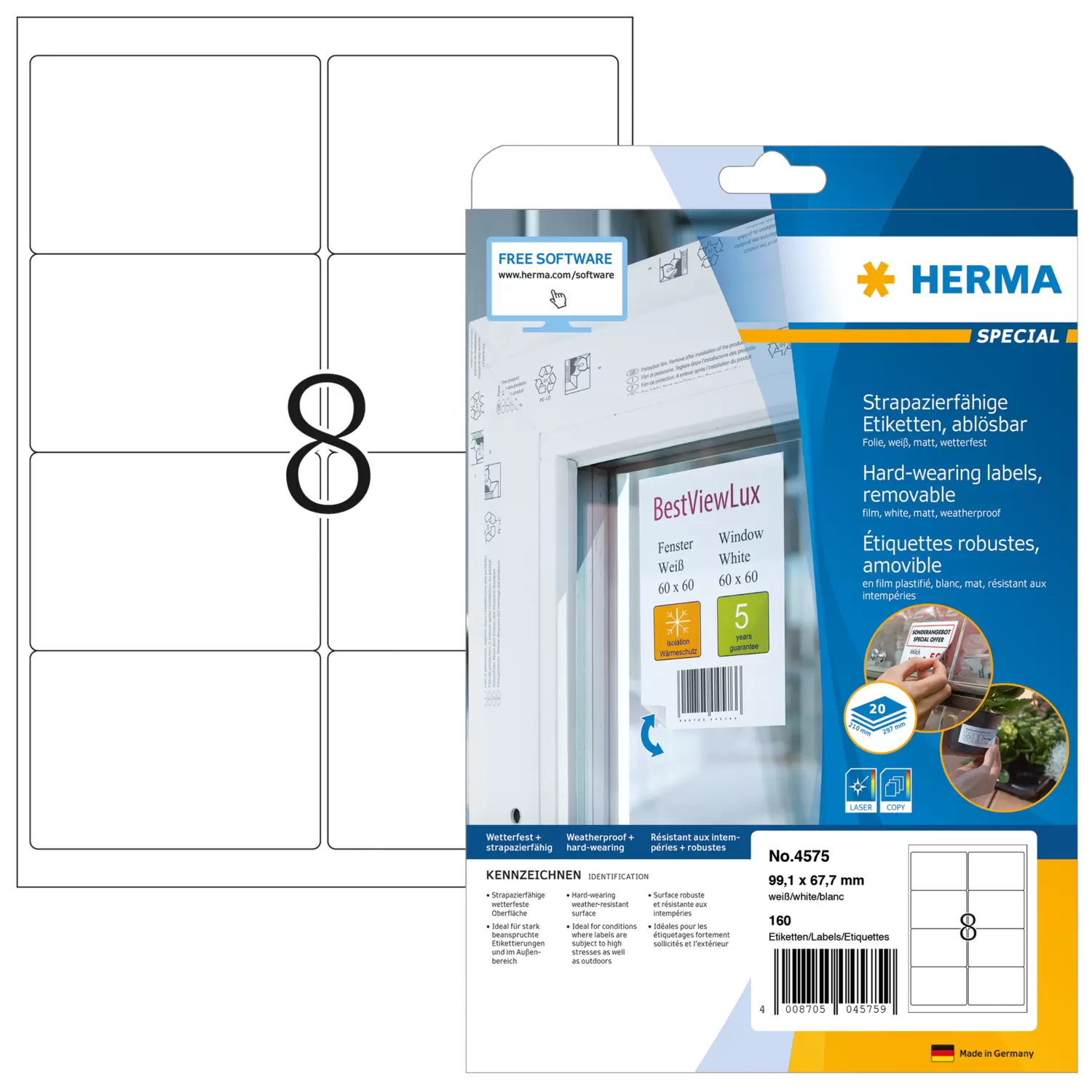 Wetterfeste Folien-Etiketten A4, 99,1 x 67,7 mm, weiß, wiederablösbar