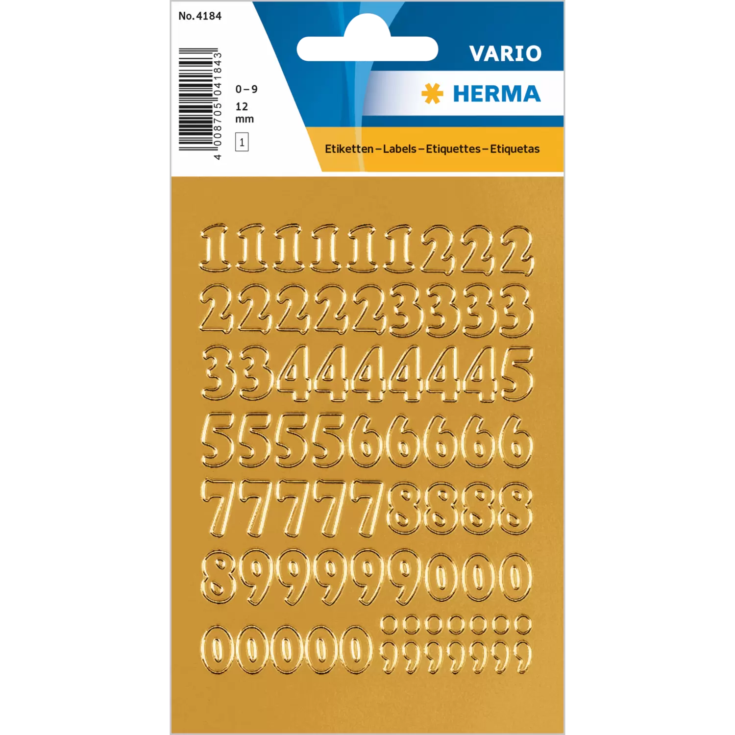 Zahlen 12 mm 0-9 Folie gold 1 Bl.