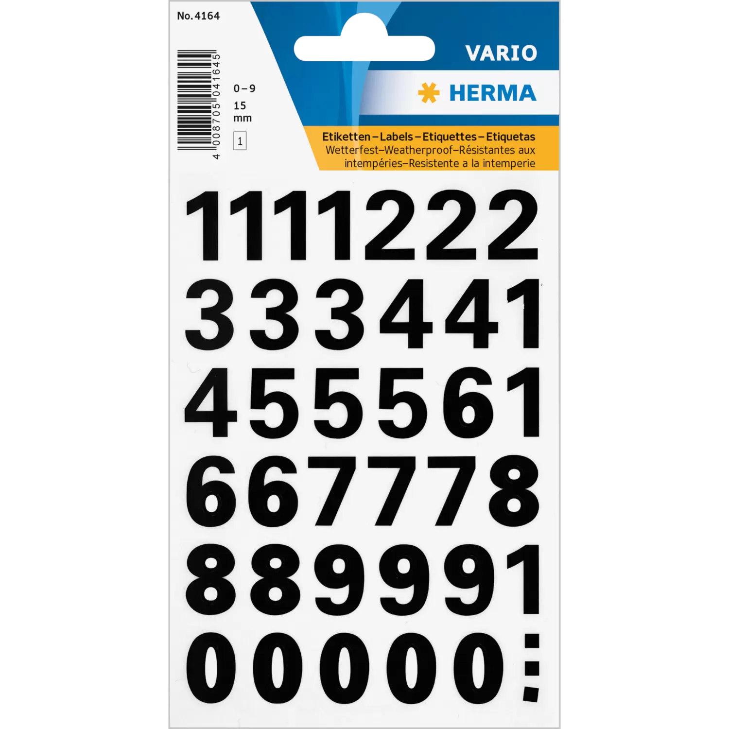 - Höhe 15 mm, schwarze Zahlen aus wetterfester Folie