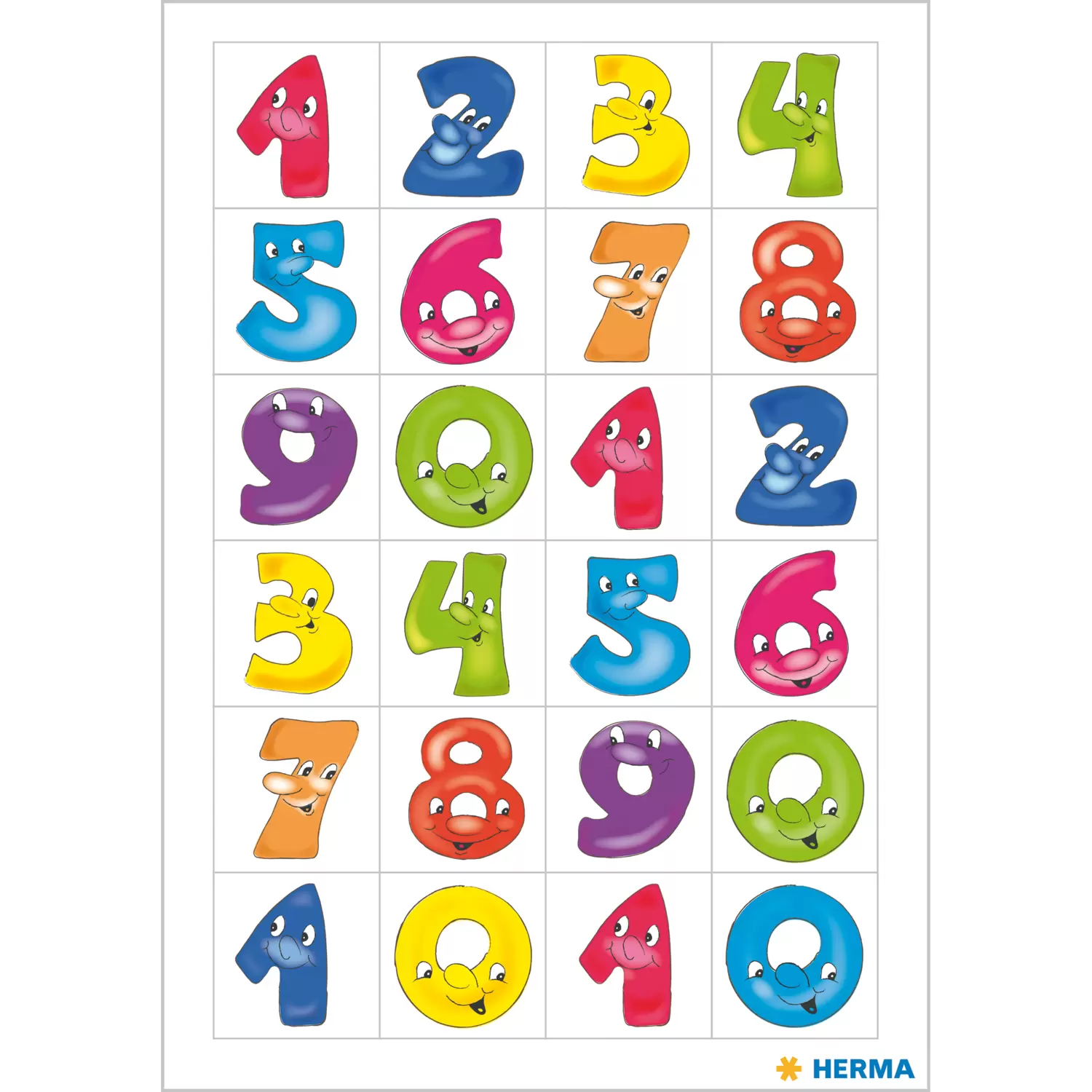 - Lustige Gesichter tummeln sich auf den bunten, selbstklebenden Zahlen