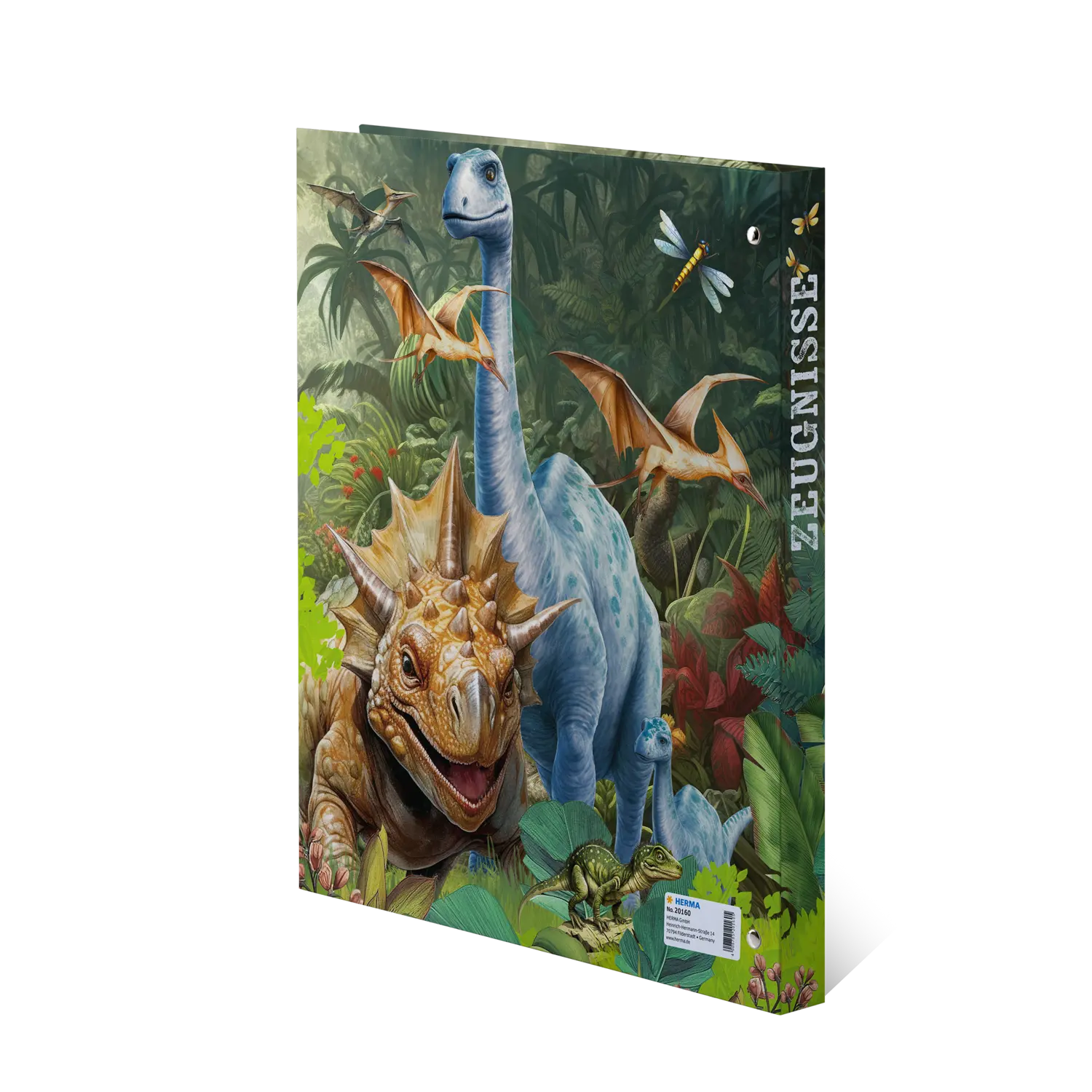 Das HERMA Zeugnisringbuch DinoWorld im DIN A4 Format überzeugt mit starken Dinosauriermotiven und glänzendem Design. Das stabile Cover mit Innendruck schützt Dokumente zuverlässig. Mit der 4 Ringmechanik und Niederhalter können Zeugnisse und Urkunden einfach einsortiert werden. 10 glasklare Prospekthüllen bieten Platz für bis zu 20 Blatt. Das Inhaltsverzeichnis zum Selbstbeschriften sorgt für Übersicht und Struktur. Perfekt für Schule, Ausbildung und alle Dino Fans, die Kraft und Abenteuer lieben.