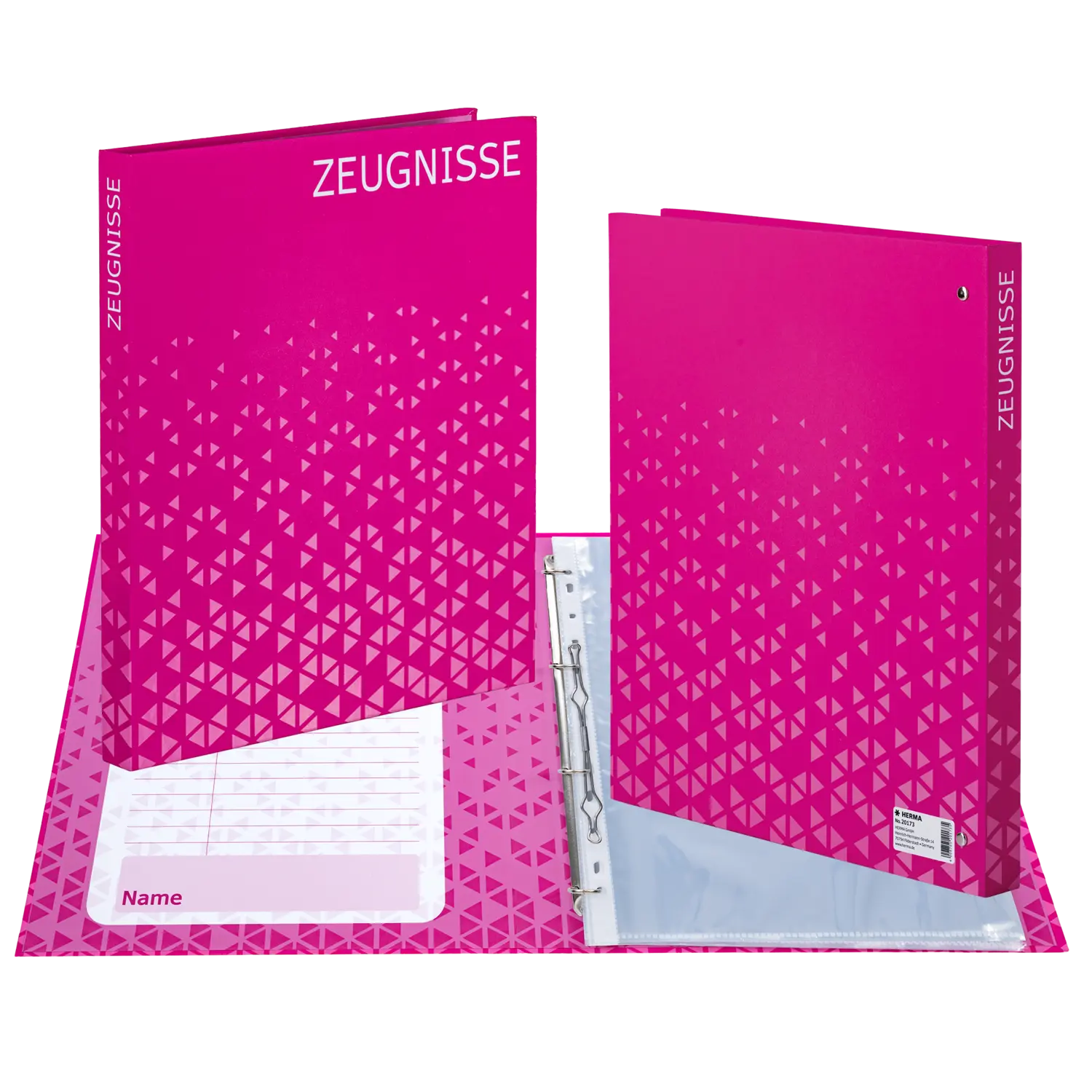 Das HERMA Zeugnisringbuch Pink im DIN A4 Format bietet stilvollen Schutz für Zeugnisse, Urkunden und wichtige Dokumente. Das stabile, vollflächig bedruckte Cover mit Innendruck präsentiert sich im hochwertigen, veredelten Design. Mit der 4 Ringmechanik und Niederhalter lassen sich Unterlagen einfach einsortieren und sicher fixieren. Bereits enthalten sind 10 glasklare Prospekthüllen für bis zu 20 Blatt. Ein praktisches Inhaltsverzeichnis zum Selbstbeschriften sorgt für Ordnung. Perfekt für Schule, Ausbildung und als besonderes Geschenk.